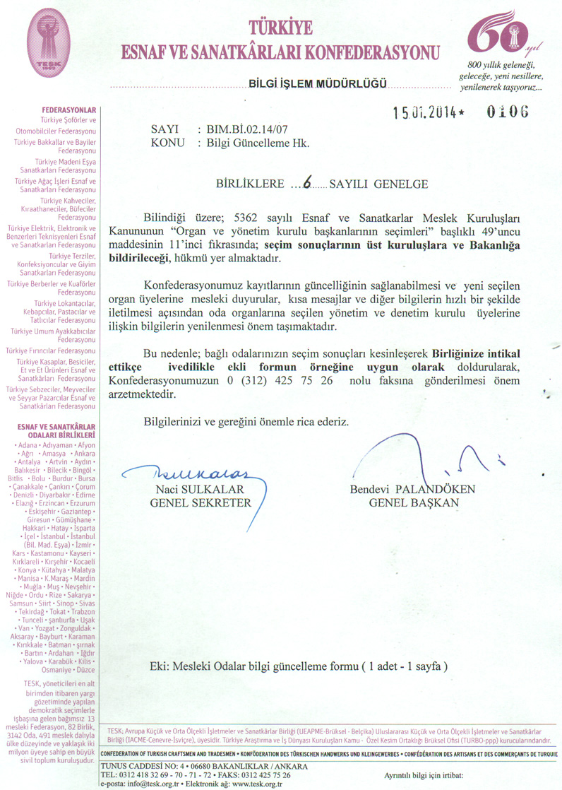 Bilgi Güncelleme Hk. 006 Sayılı Genelge 15.01.2014